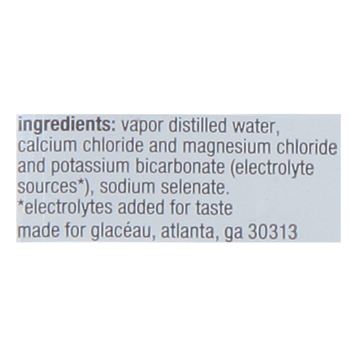 Vapor Distilled Water, Calcium Chloride And Magnesium Chloride And Potassium Bicarbonate (Electrolyte Sources), Sodium Selenate. Electrolytes Added For Taste