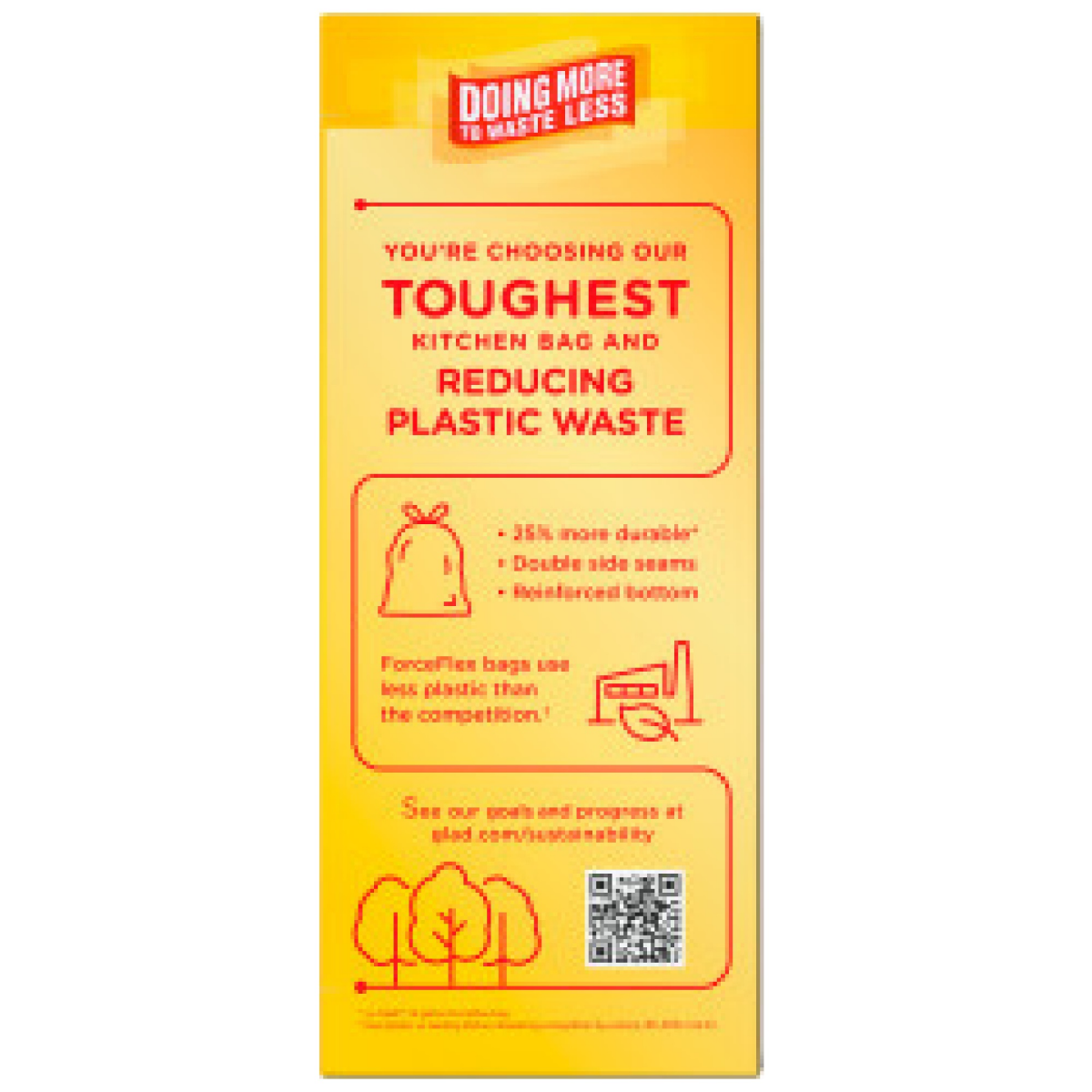 - 25% MORE DURABLE (1): These Glad ForceFlex MaxStrength Tall Kitchen Trash Bags are 25% more durable versus Glad 13 gallon ForceFlex tall kitchen bags
