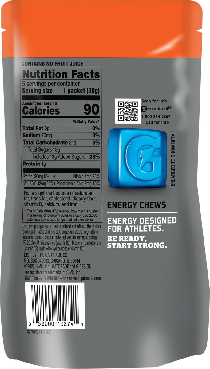 Gatorade Prime Energy Chews Cool Blue (5 - 1 Oz) 5.2 Ounce 5 Pack Sleeves