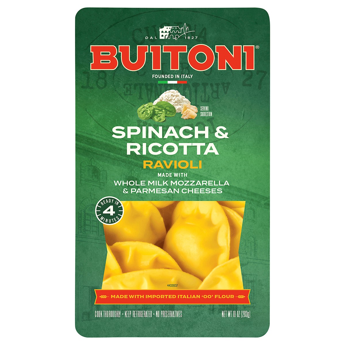 Buitoni's classic Spinach & Cheese Tortellini is now NEW Buitoni Spinach & Ricotta Ravioli! Stuffed with ricotta, whole milk mozzarella, parmesan and fontina cheeses, it's perfect for the whole family…