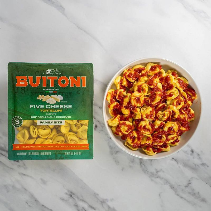 Stuffed with ricotta, whole milk mozzarella, romano, asiago, and imported DOP Parmigiano Reggiano cheeses, Buitoni Five Cheese Tortellini refrigerated pasta is perfect for the whole family to enjoy. T…