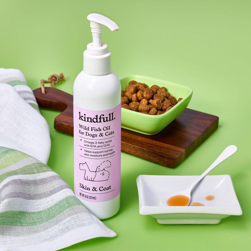 Kindfull™ Wild Fish Oil for dogs and cats is made with salmon and pollock oil as the first ingredients. This wild fish oil helps support skin and coat health. It is intended for intermittent or supple…