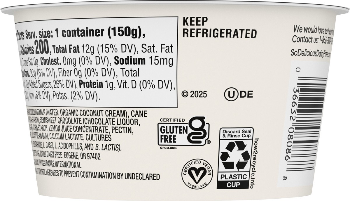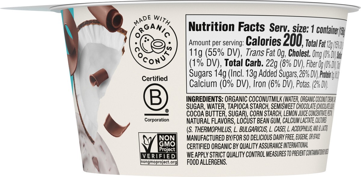 - MINDFUL INGREDIENTS, NEXT-LEVEL TASTE: So Delicious Dairy Free plant based yogurt alternative with chocolate shavings is Certified Vegan and Non-GMO Project Verified