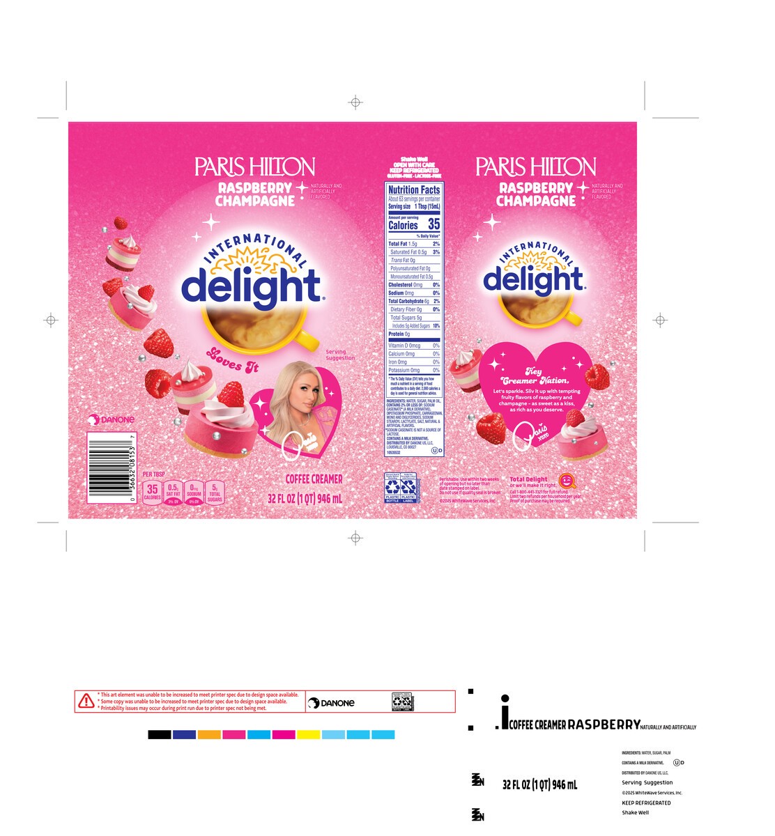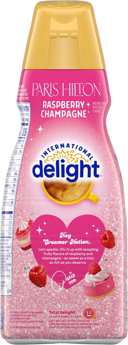 - MORNINGS, AFTERNOONS, ALL NIGHT LONG: International Delight Paris Hilton Raspberry Champagne flavored creamer is ready to use when you are so you can enjoy it any time of day