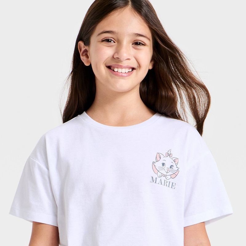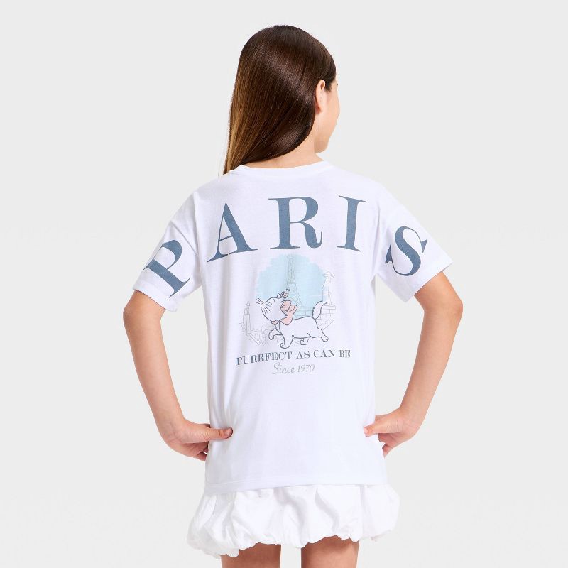Disney Girls' Aristocats Marie Paris Oversized Front and Back Short Sleeve Graphic T-Shirt - White M