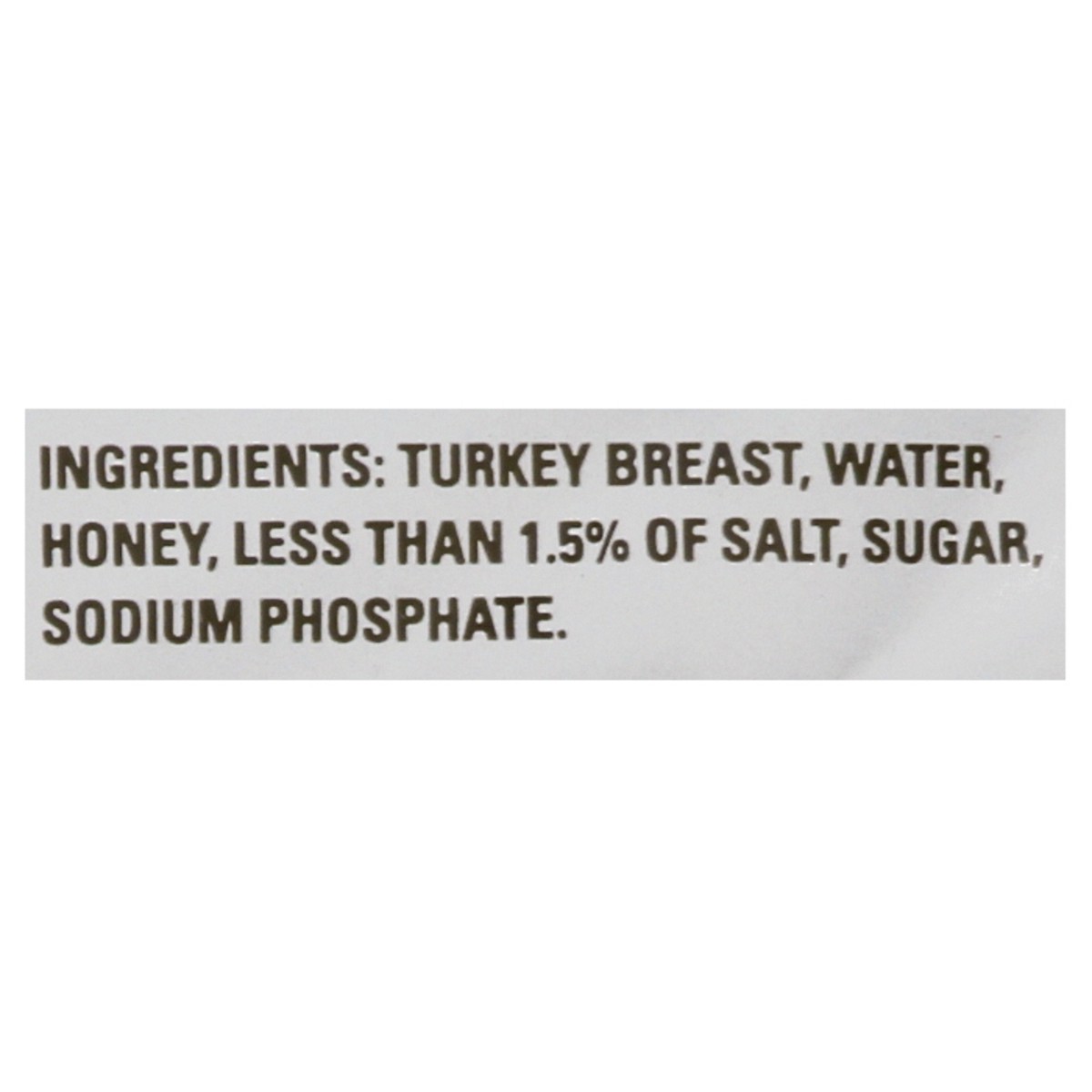 Turkey Breast, Water, Honey, Less than 1.5% of Salt, Sugar, Sodium Phosphate.