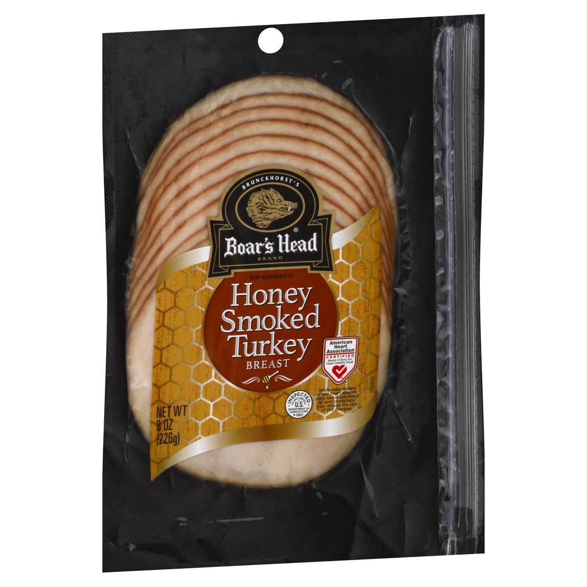 With a pleasantly mild and flavorful taste, Boar's Head Honey Smoked Turkey Breast is lightly smoked and hand coated in golden honey for a delicately smoky, subtly sweet flavor in every slice.