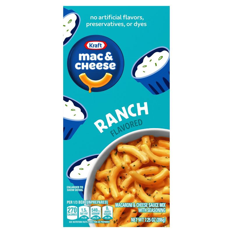 - KRAFT MAC AND CHEESE: One 7.25 oz box of Kraft Ranch Flavored Mac & Cheese Macaroni and Cheese Dinner