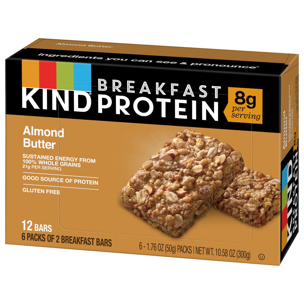 KIND Breakfast Almond Butter protein bars are a wholesome, healthy snack made with 100% whole grains for sustained energy. KIND Almond Butter breakfast protein bars are made with five super grains—oat…