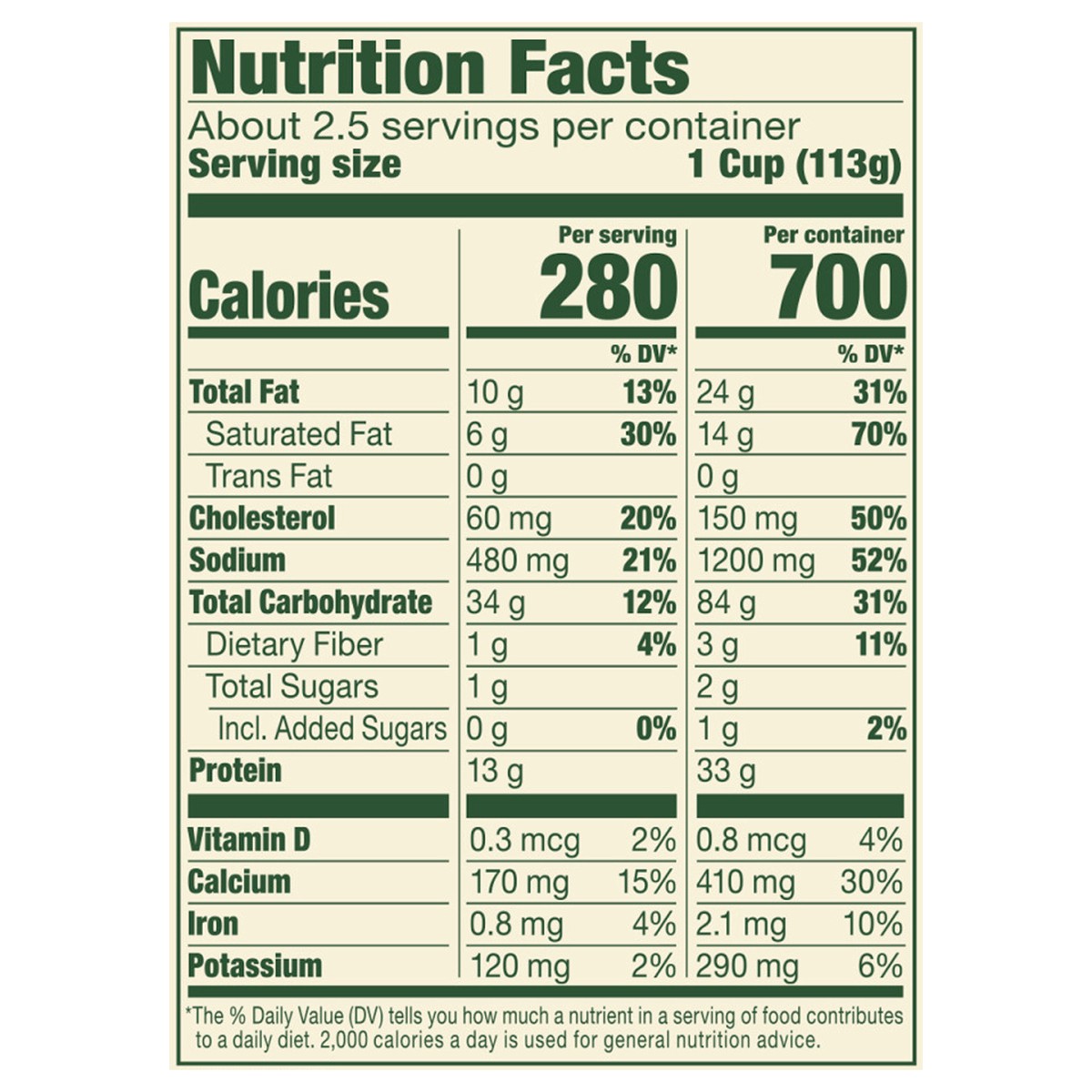 Filling: Ricotta Cheese (Pasteurized Milk, Pasteurized Whey, Vinegar, Salt), Low Moisture Mozzarella Cheese (Milk, Cheese Cultures, Salt, Enzymes), Parmesan Cheese (Part-Skim Cow’s Milk, Cheese Cultur…