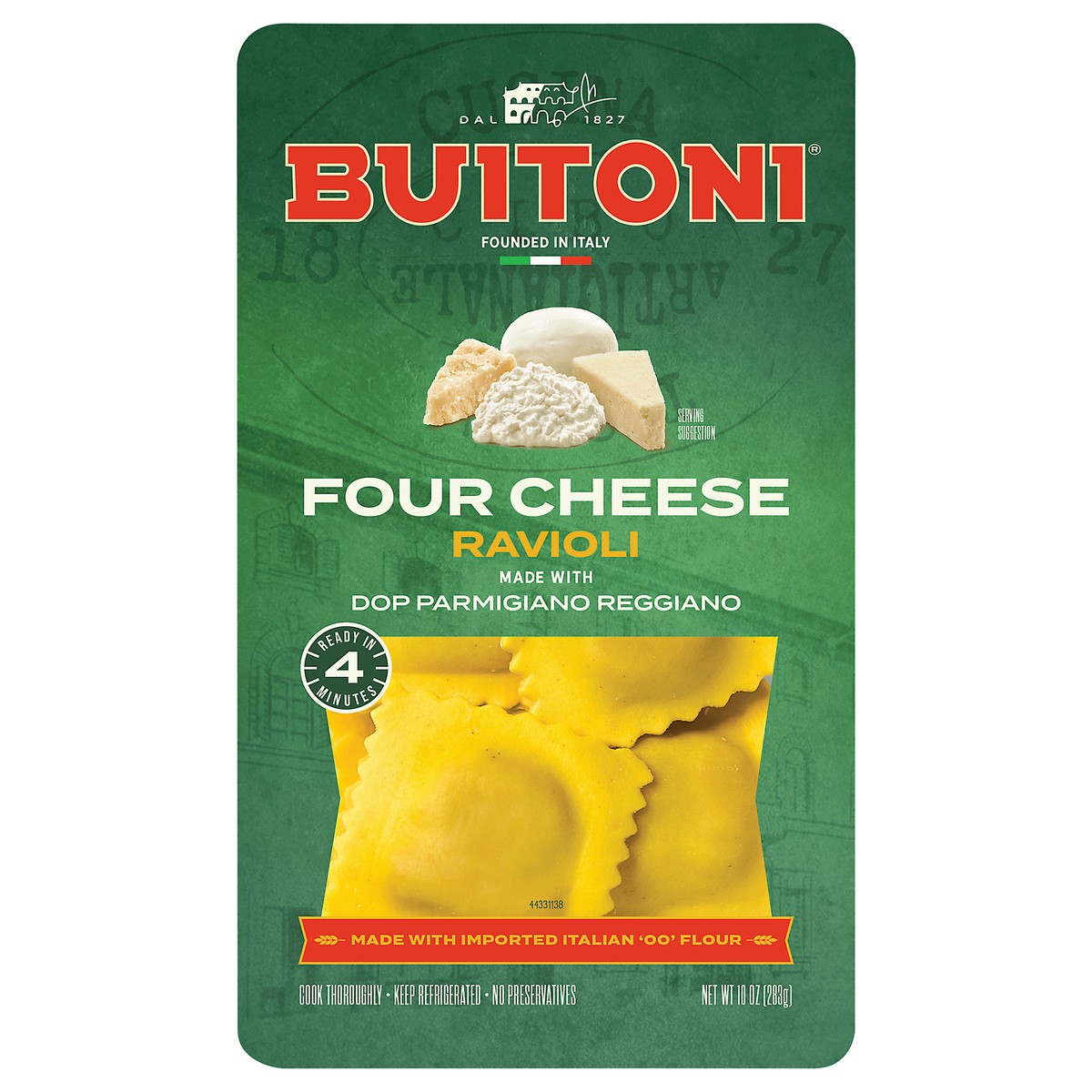 Introducing NEW & improved Buitoni Four Cheese Ravioli! Stuffed with ricotta, whole milk mozzarella, imported DOP Parmigiano Reggiano, and asiago cheeses, it's perfect for the whole family to enjoy. M…