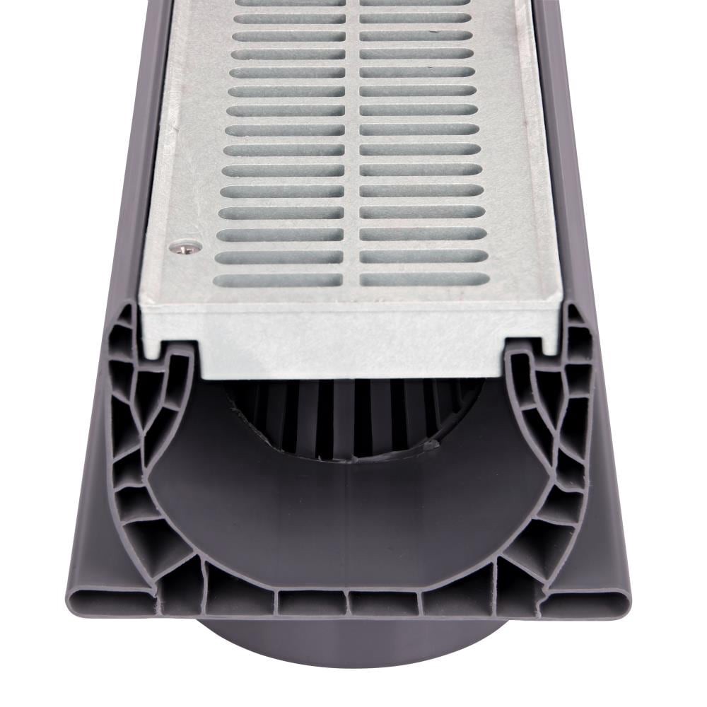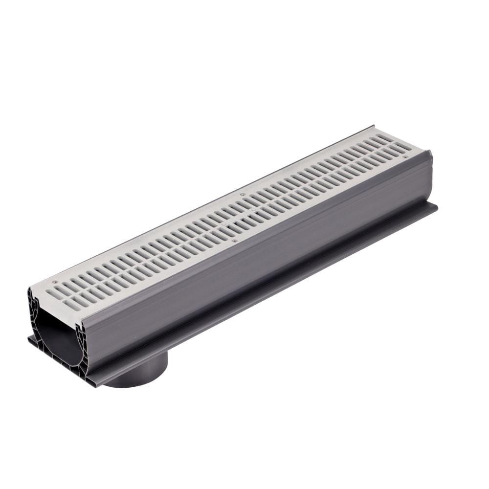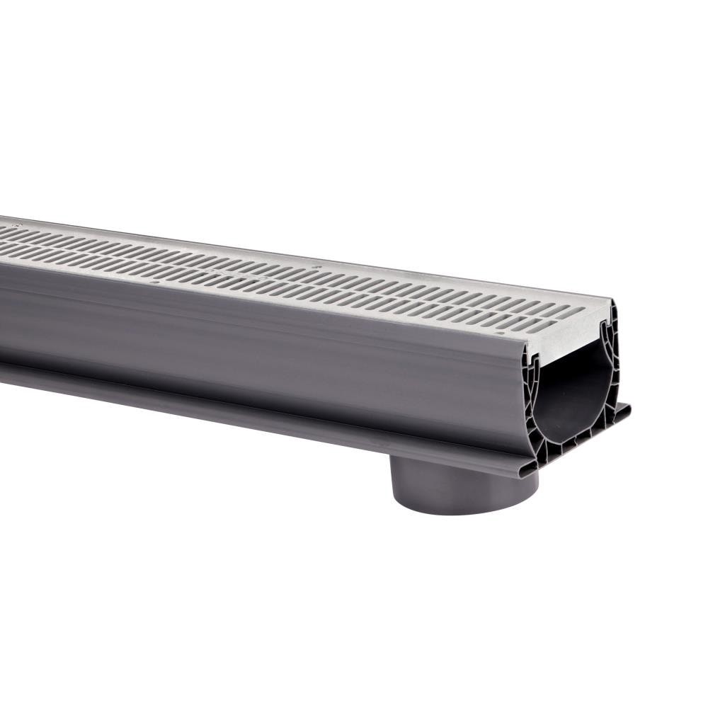 Channel drain and grate come preassembled for a faster install. Bottom outlet is integrated into the channel drain. Bottom outlet connects to 3 inch and 4 inch sewer and drain fittings. The 2 foot Speā¦