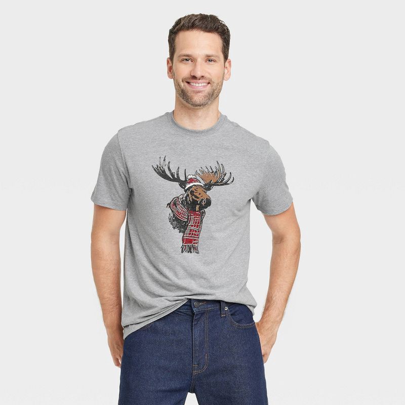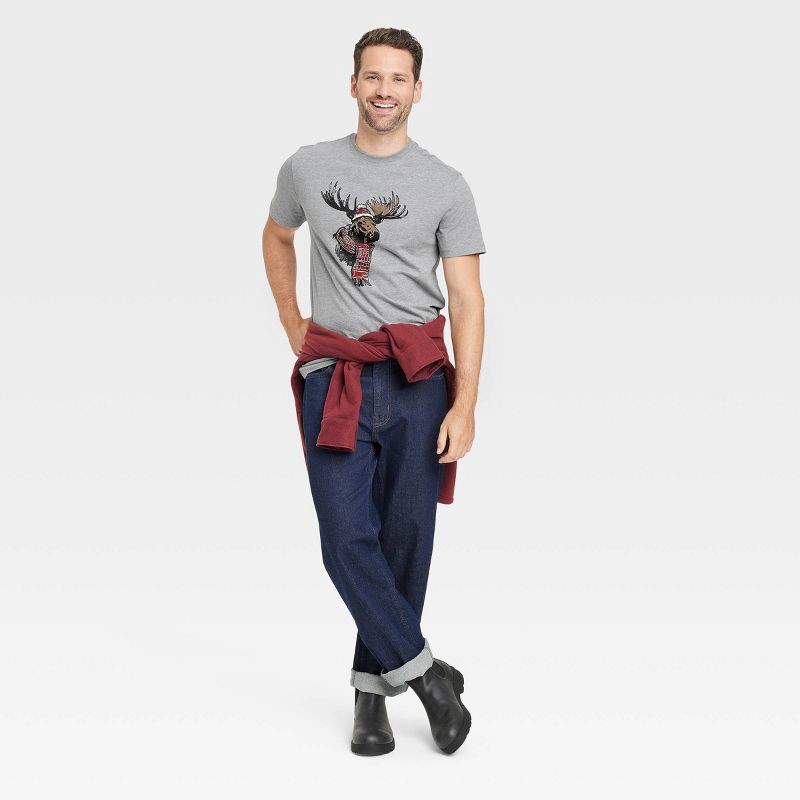 Spend casual days in cool comfort with this Holiday Crewneck Short-Sleeve Graphic T-Shirt from Goodfellow & Co™. This standard-fit graphic T-shirt is crafted from cotton-blend jersey fabric for breath…