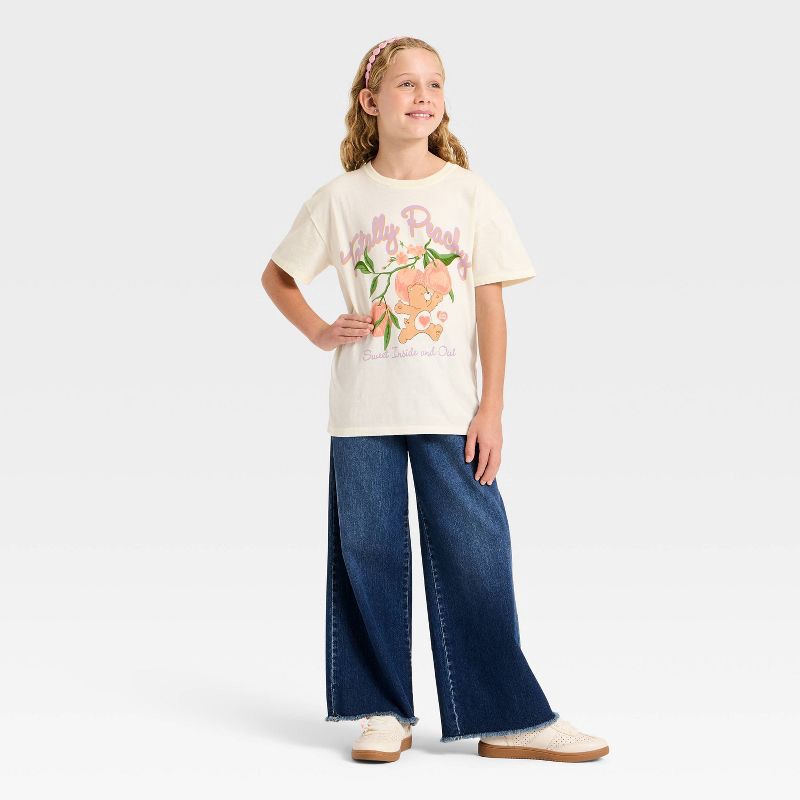 Add feel-good vibes to her everyday outfits with this Girls' Care Bears Totally Peachy Oversized Graphic T-Shirt. Made from soft, breathable fabric, it keeps her comfortable for school days, playtime,…