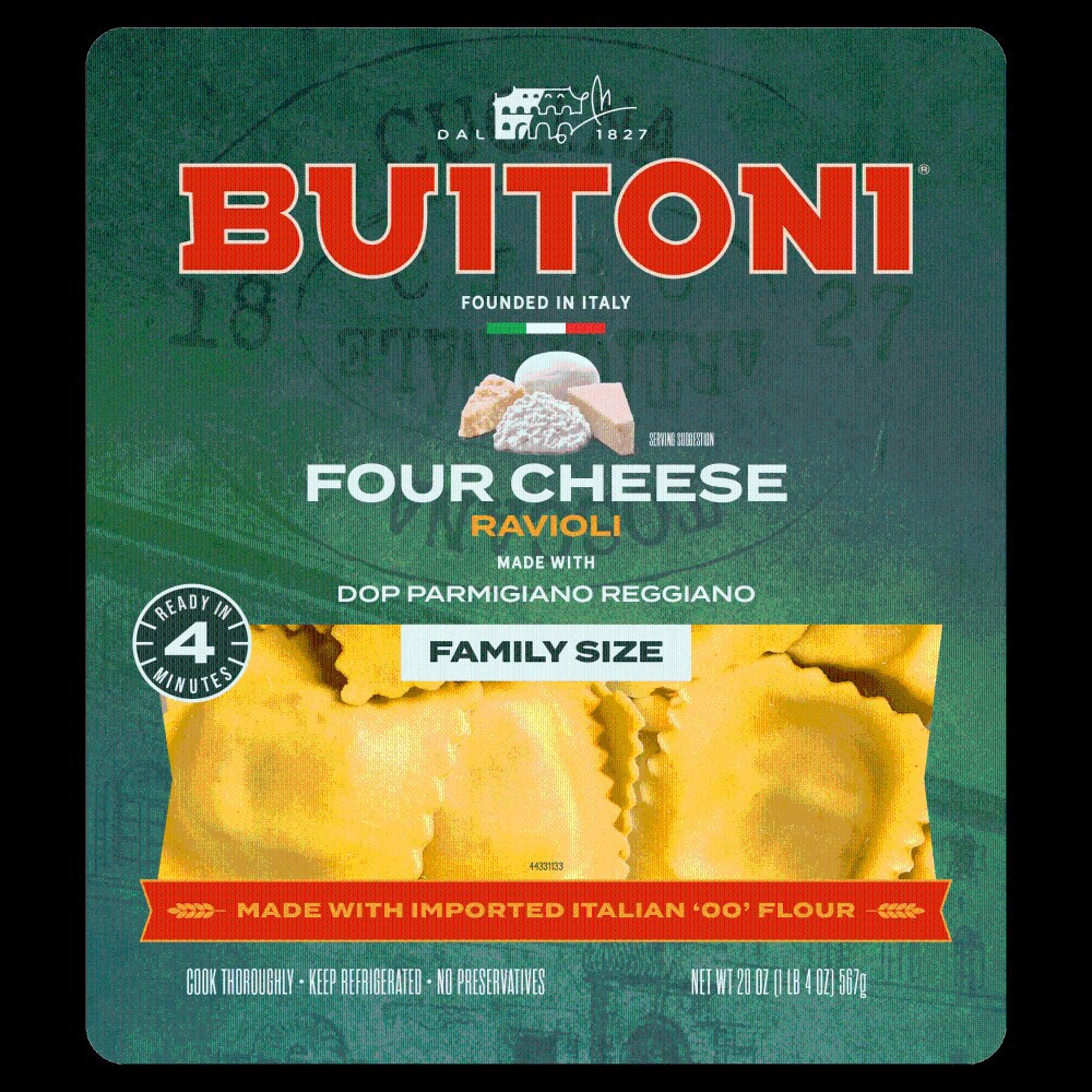 Introducing NEW & improved Buitoni Four Cheese Ravioli! Stuffed with ricotta, whole milk mozzarella, imported DOP Parmigiano Reggiano, and asiago cheeses, it's perfect for the whole family to enjoy. M…