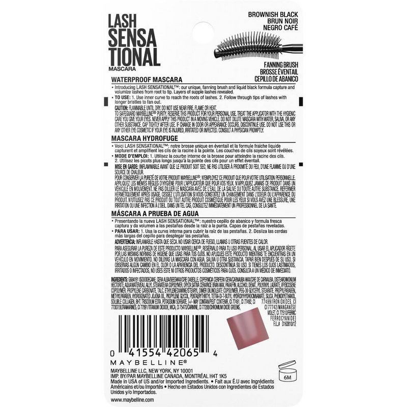 - Lash Sensational Waterproof Mascara, For A Full Fan Effect: Exclusive fanning mascara brush with ten layers of bristles reveals layers of lashes for a sensational full-fan effect; Add the look of length and volume without clumping; Ophthalmologist tested, contact lens safe