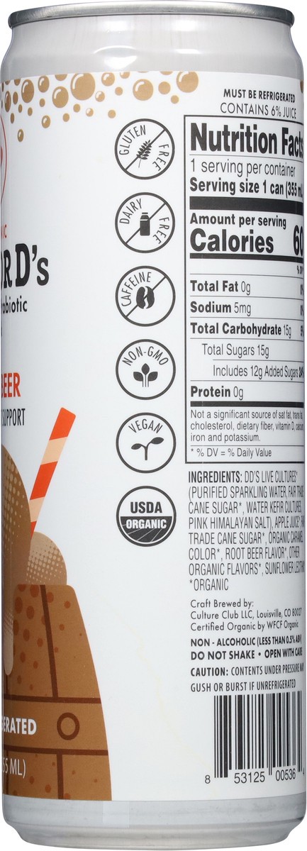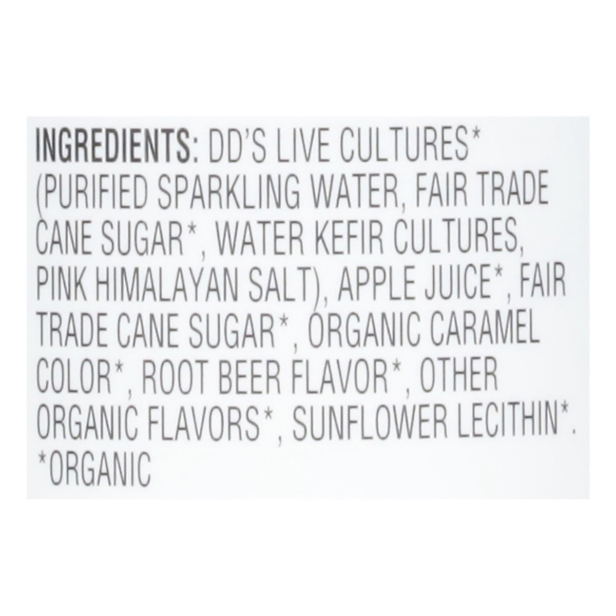 Dd's Live Cultures* (Purified Sparkling Water, Fair Trade Cane Sugar*, Water Kefir Cultures, Pink Himalayan Salt), Apple Juice*, Fair Trade Cane Sugar*, Organic Caramel Color*, Root Beer Flavor*, Othe…
