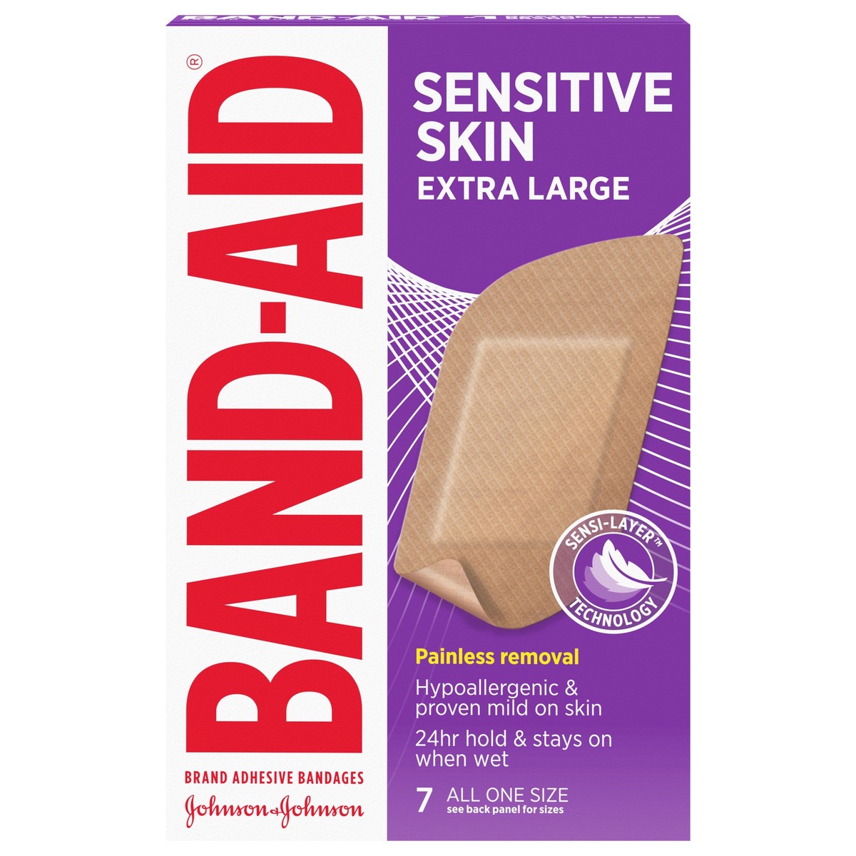 - Band-Aid Brand Extra-Large Adhesive Bandages for Sensitive Skin are durable & hypoallergenicSterile