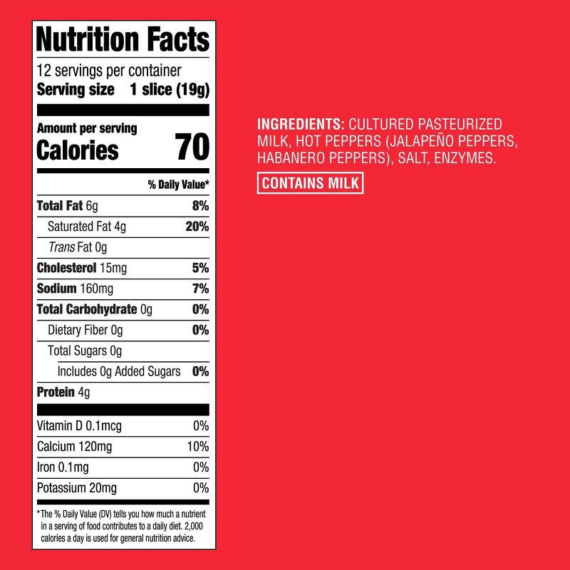 CULTURED PASTEUR- IZED MILK, HOT PEPPERS (JALAPEÑO PEPPERS, HABANERO PEPPERS), SALT, ENZYMES.