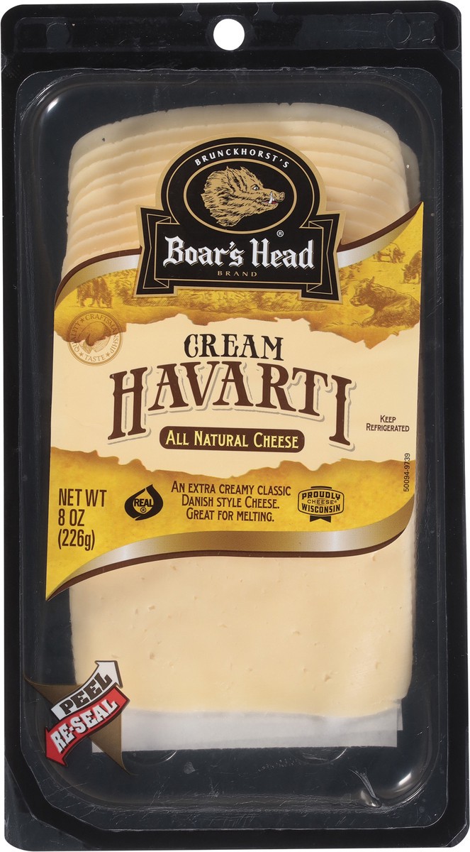 A double crème classic made in the traditional Danish style. Boar's Head Cream Havarti is a Wisconsin-made cheese that has an incredibly creamy texture with a rich buttery taste.