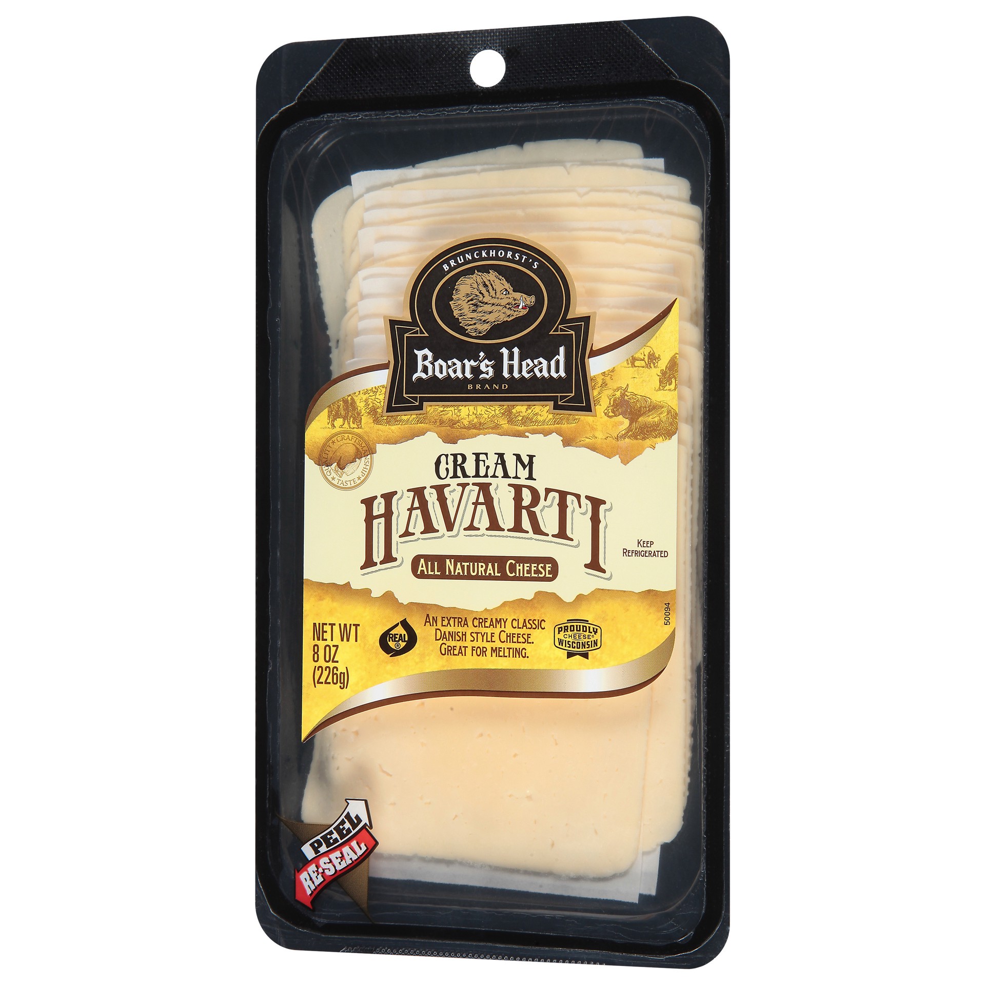 A double crème classic made in the traditional Danish style. Boar's Head Cream Havarti is a Wisconsin-made cheese that has an incredibly creamy texture with a rich buttery taste.