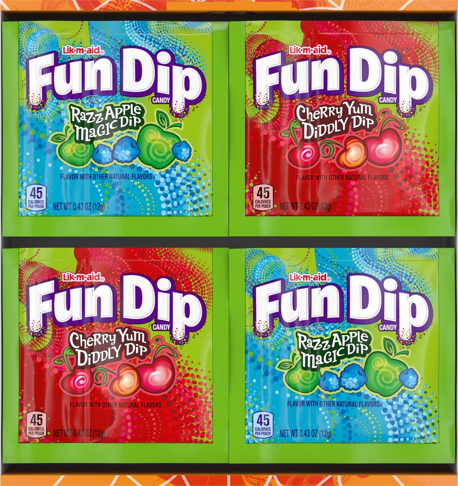 An endless assortment of sour-sweet punch. Lick and dip forever with individual pouches of Cherry Yum Diddly Dip and Razz Apple Magic. Lick it up and dip endlessly for the sugary sweet and mildly sour…