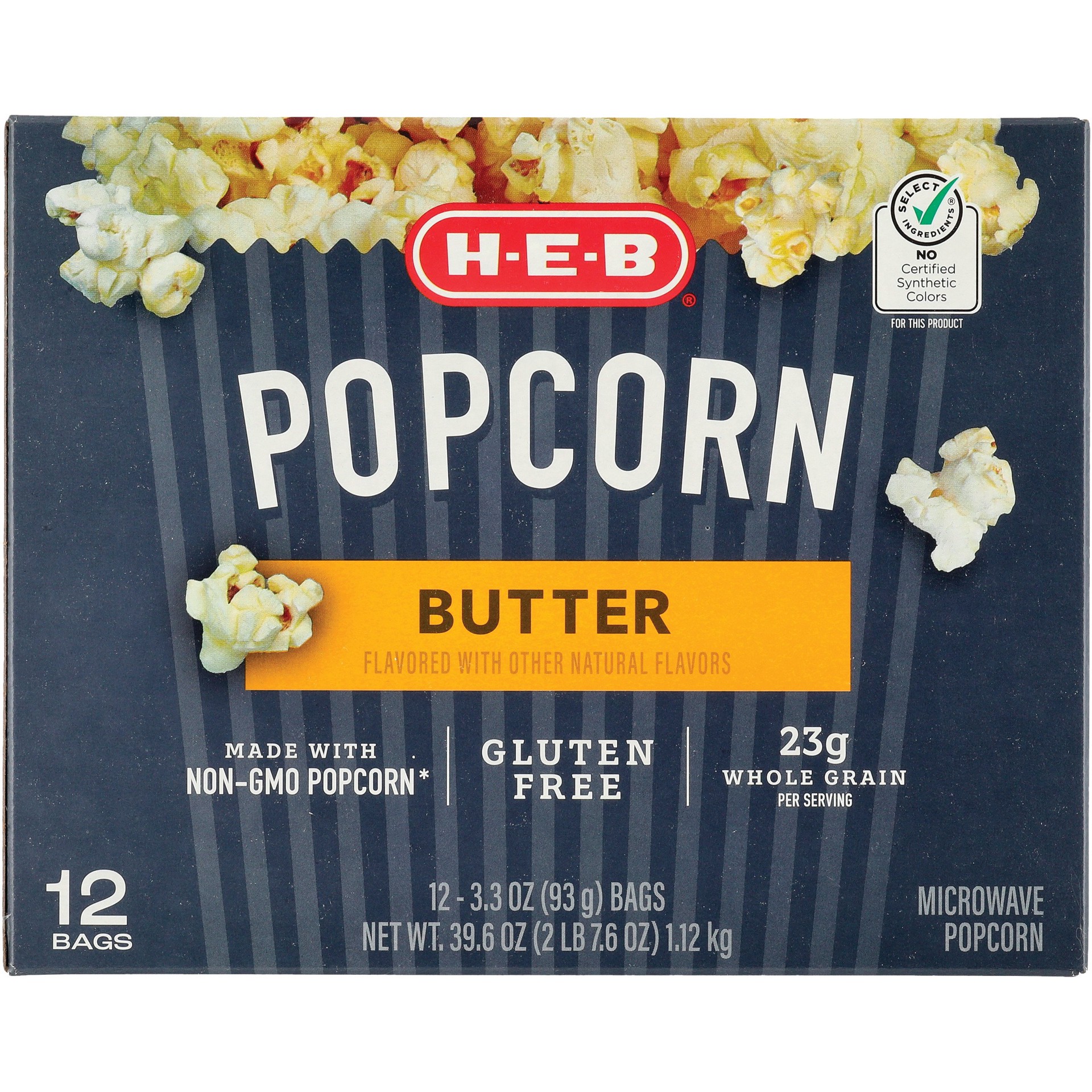 Packed with rich buttery taste, this H-E-B microwavable popcorn is quick and easy to prepare. Freshly popped in less than 2 minutes, these bags offer 23 grams of whole grain per serving and are suitab…