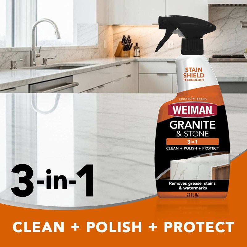 Weiman Granite & Stone 3-in-1 Clean, Polish, Protect renews shine and helps resist stains on sealed stone and solid surface countertops. This pH-neutral formula safely polishes, revealing a truly bril…