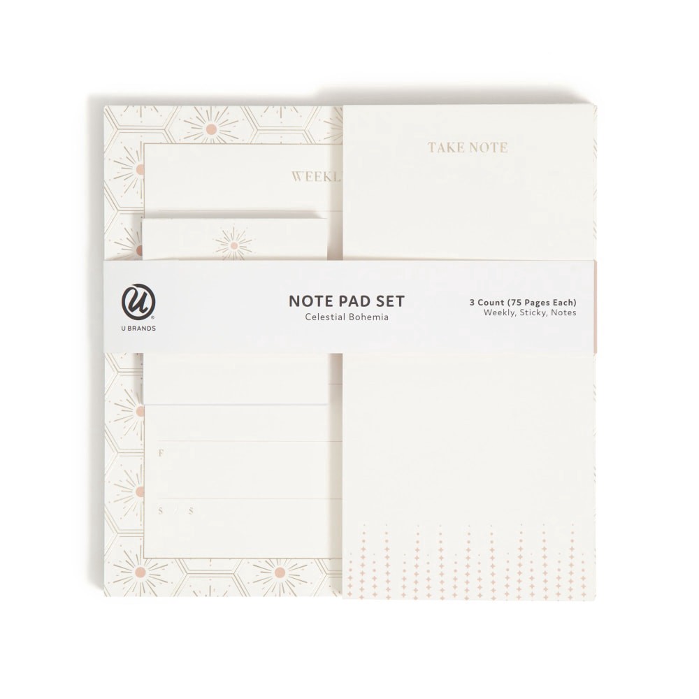U Brands Celestial Bohemia Weekly Note and Sticker Note Pad Set, 3 ct