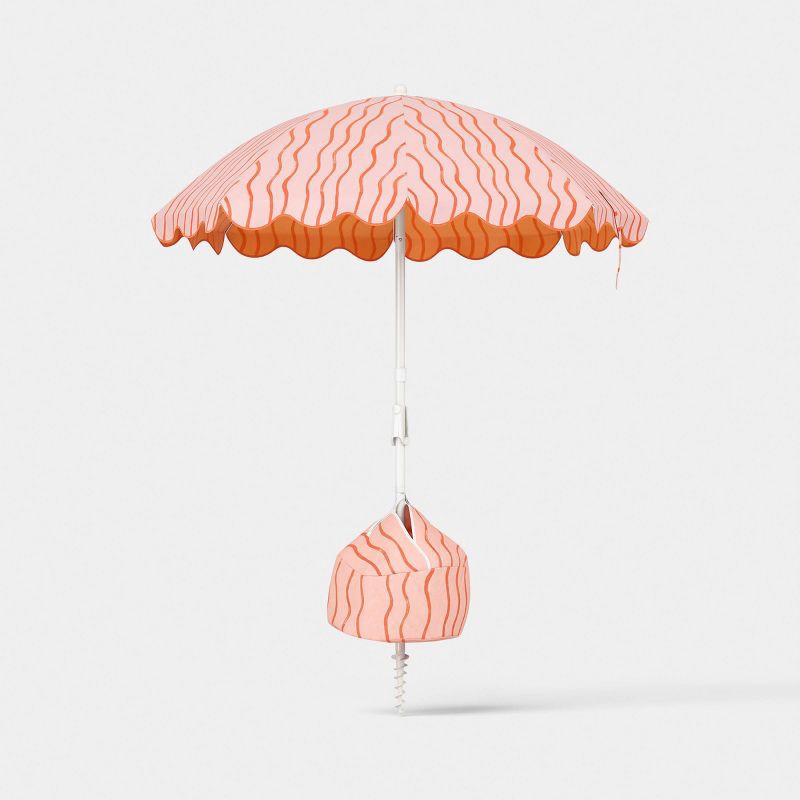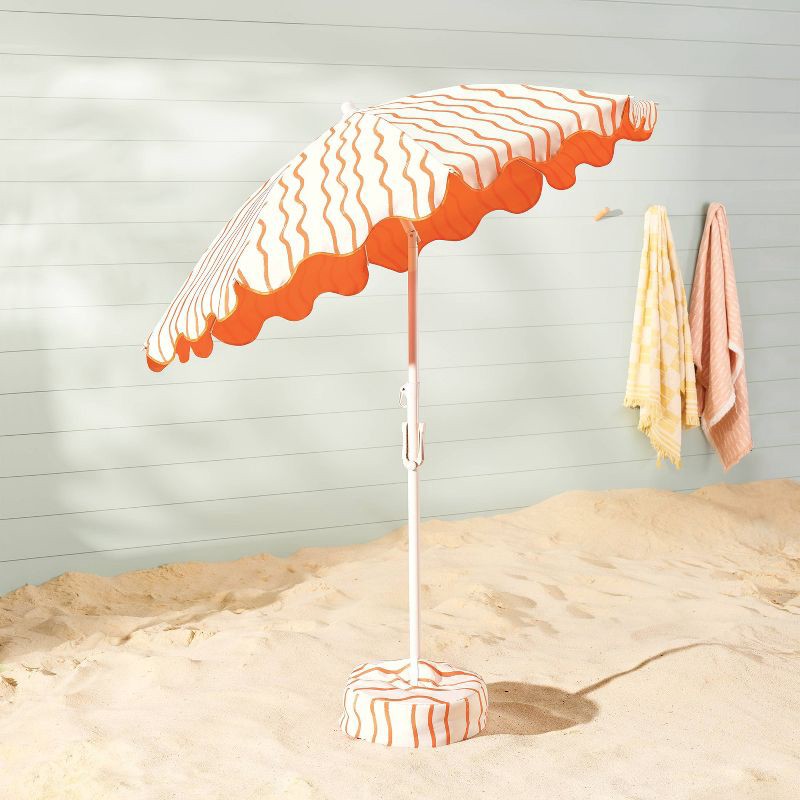 6' Round Outdoor Patio Striped Beach Umbrella Orange - Room Essentials™
