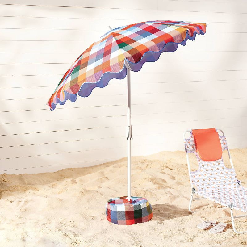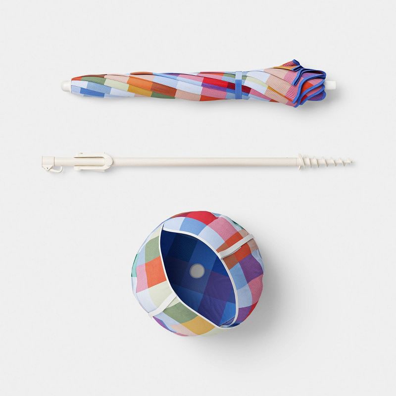 6' Round Outdoor Patio Beach Umbrella Checkered - Room Essentials™