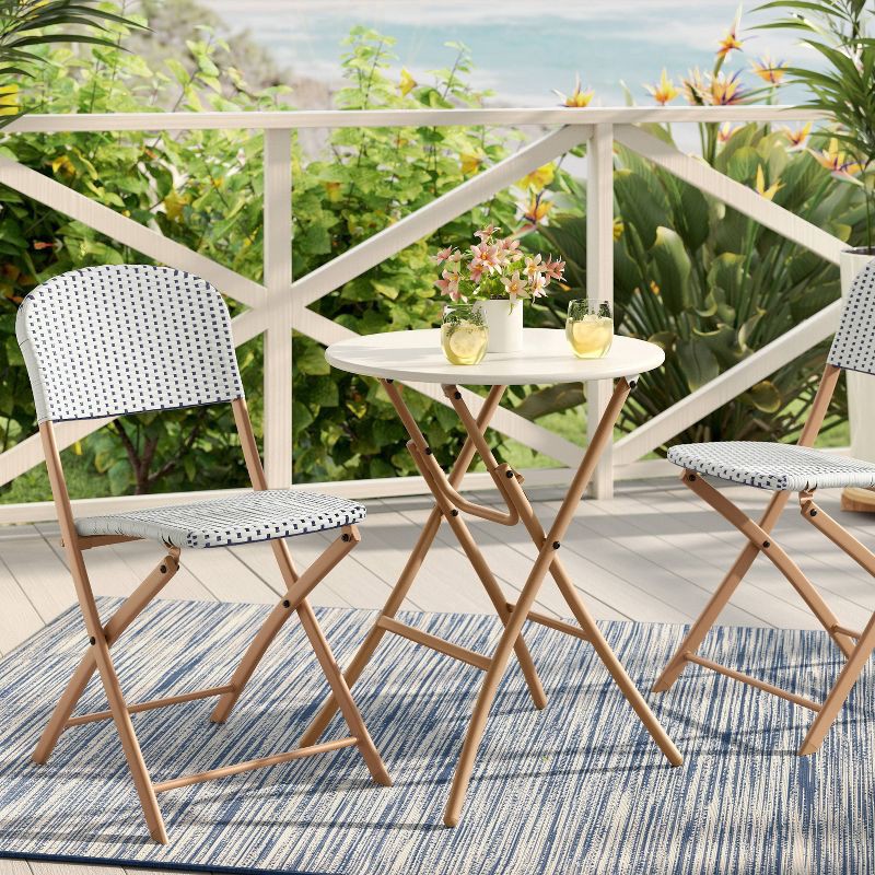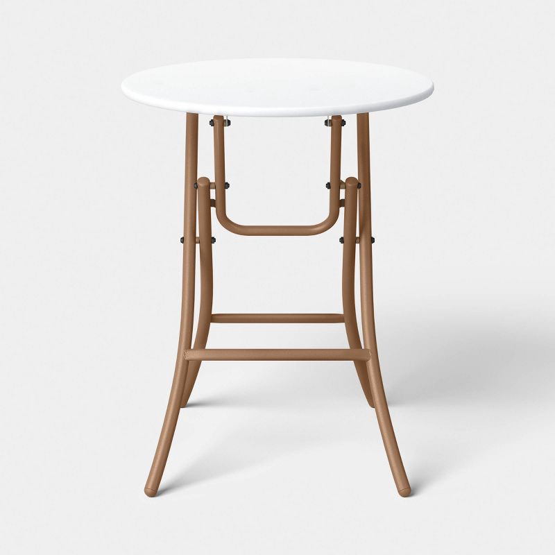 Revolutionize the look of your deck or patio with this Steel Round French Cafe Outdoor Patio Bistro Table from Threshold™. Crafted with a weather- and rust-resistant metal frame to withstands the outd…