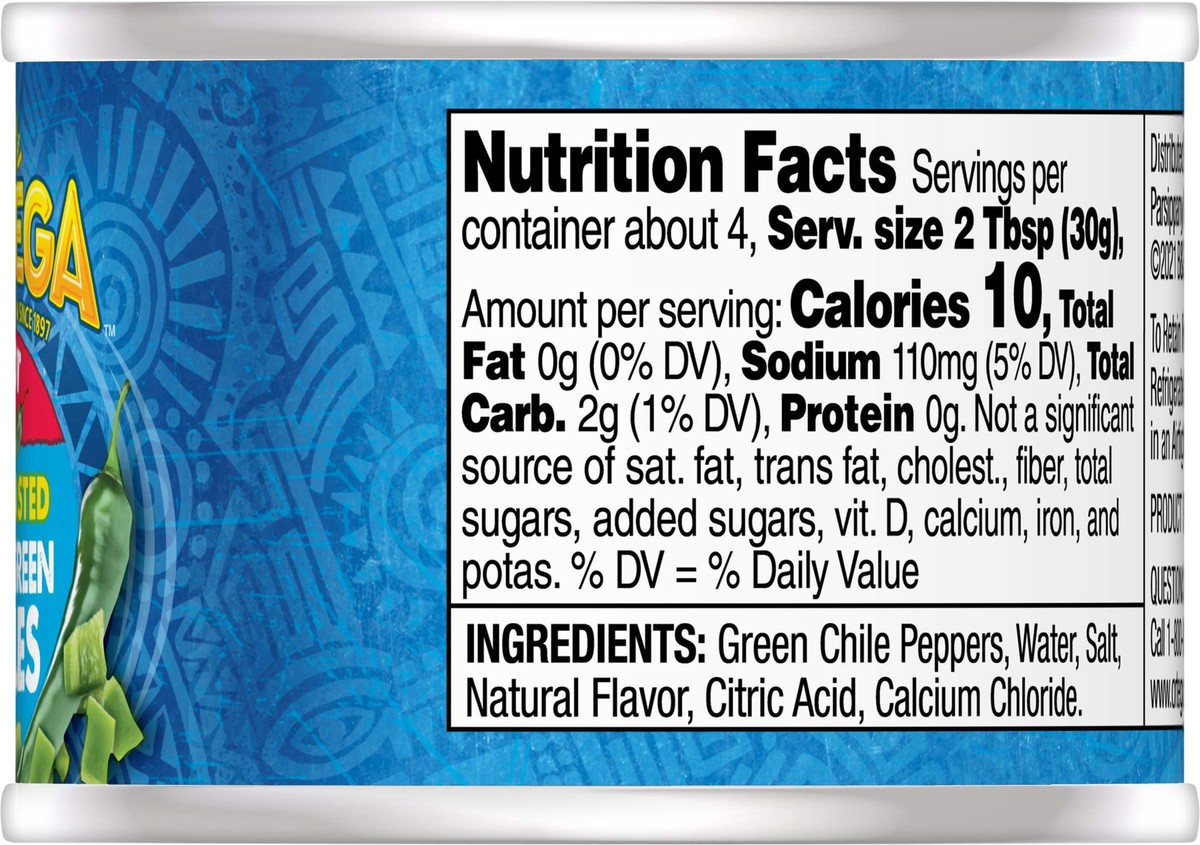 Green Chile Peppers, Water, Salt, Natural Flavor, Citric Acid, Calcium Chloride.