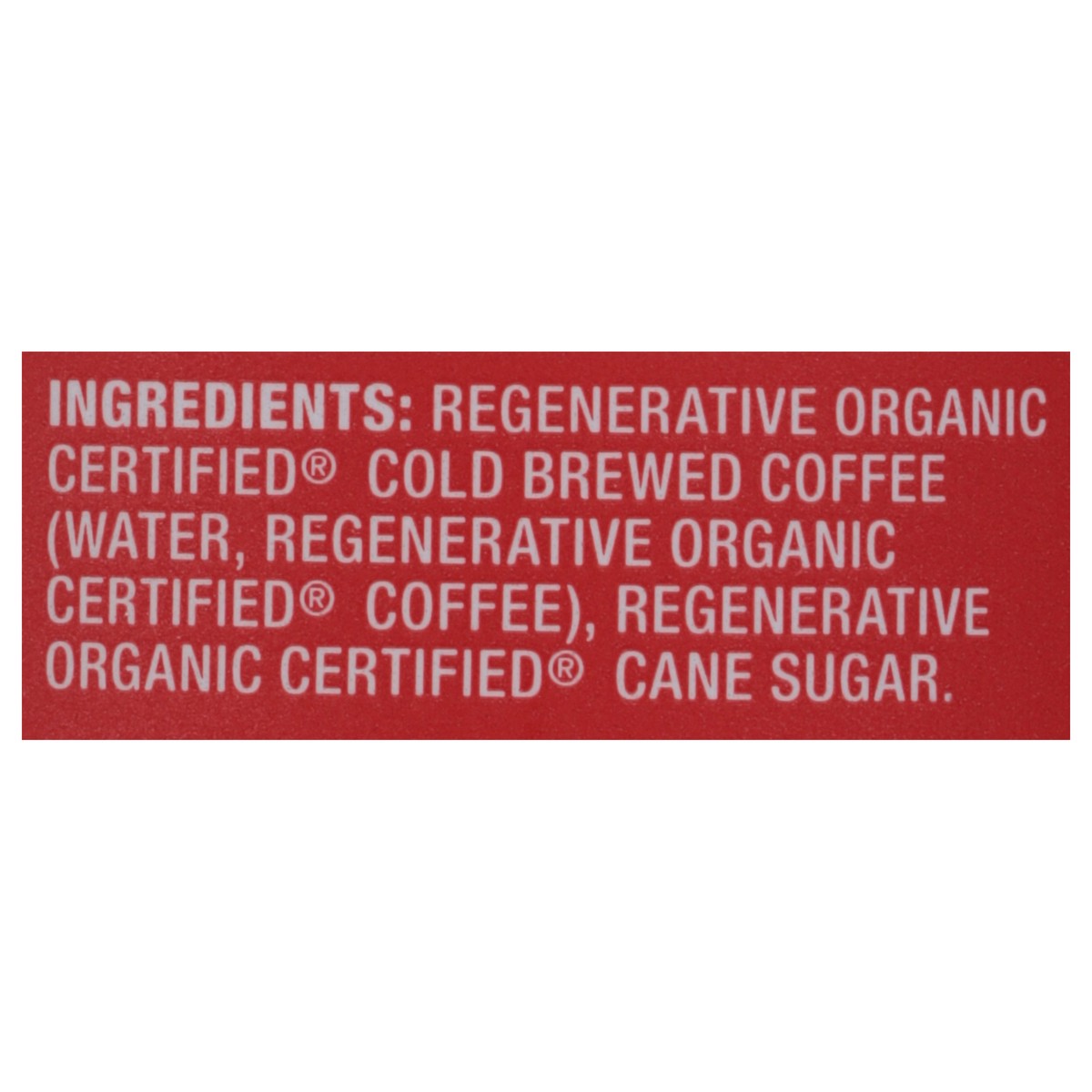 Regenerative Organic Certified Cold Brewed Coffee (Water, Regenerative Organic Certified Coffee), Regenerative Organic Certified Cane Sugar.