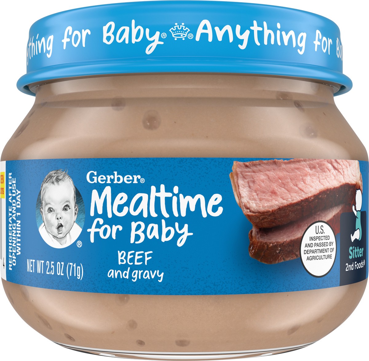 Gerber Beef and Gravy baby food purees are a delicious Gerber mealtime dinner option. Meats & poultry are among the best food sources for zinc for babies. Inspected by the USDA, they contain 8 grams o…