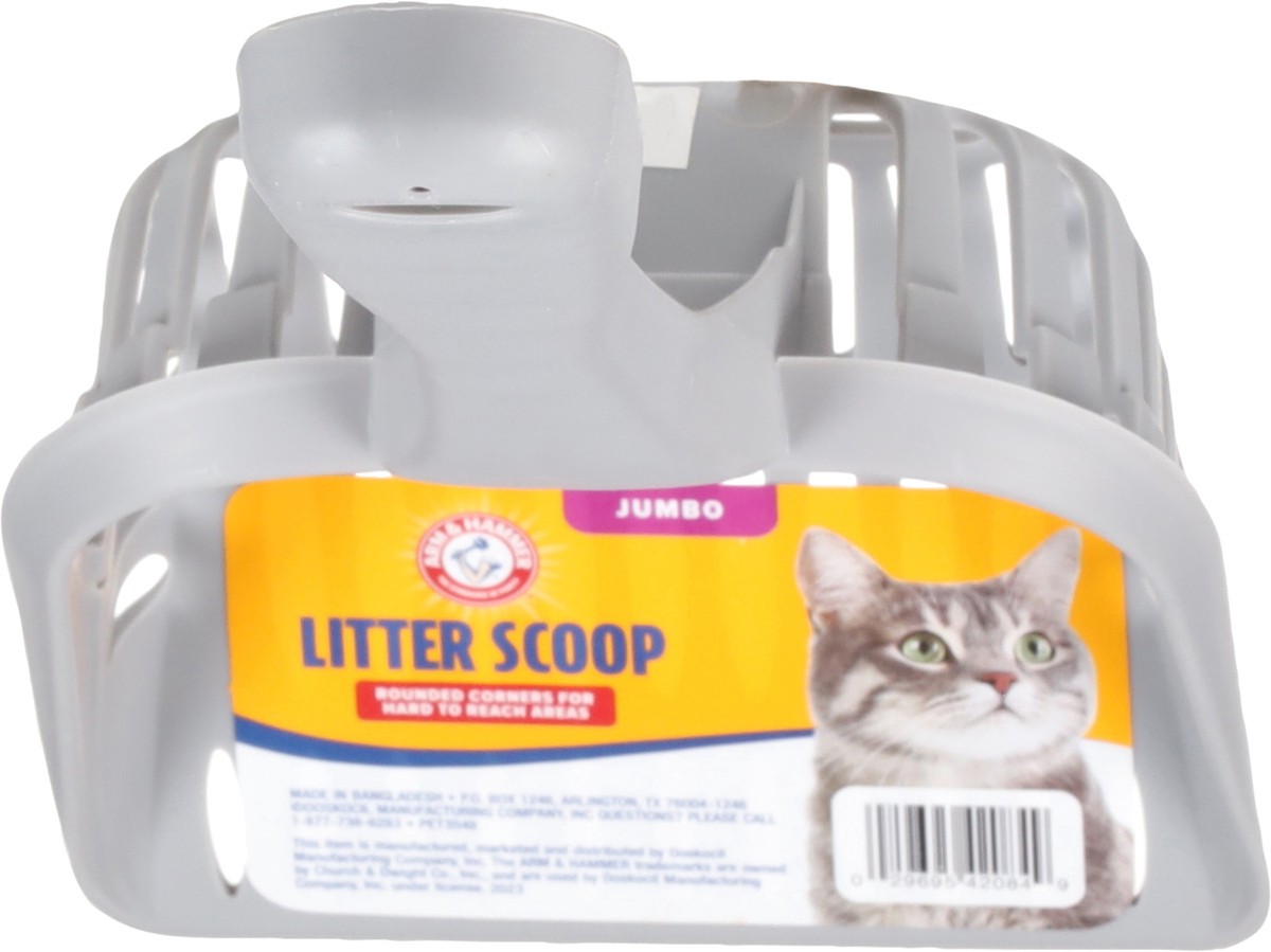 Arm & Hammer's Jumbo Litter Scoop is a jumbo-sized litter scoop with built-in antimicrobial protection that stops the growth of bacteria and reduces odors. The slotted design lets clean litter fall th…