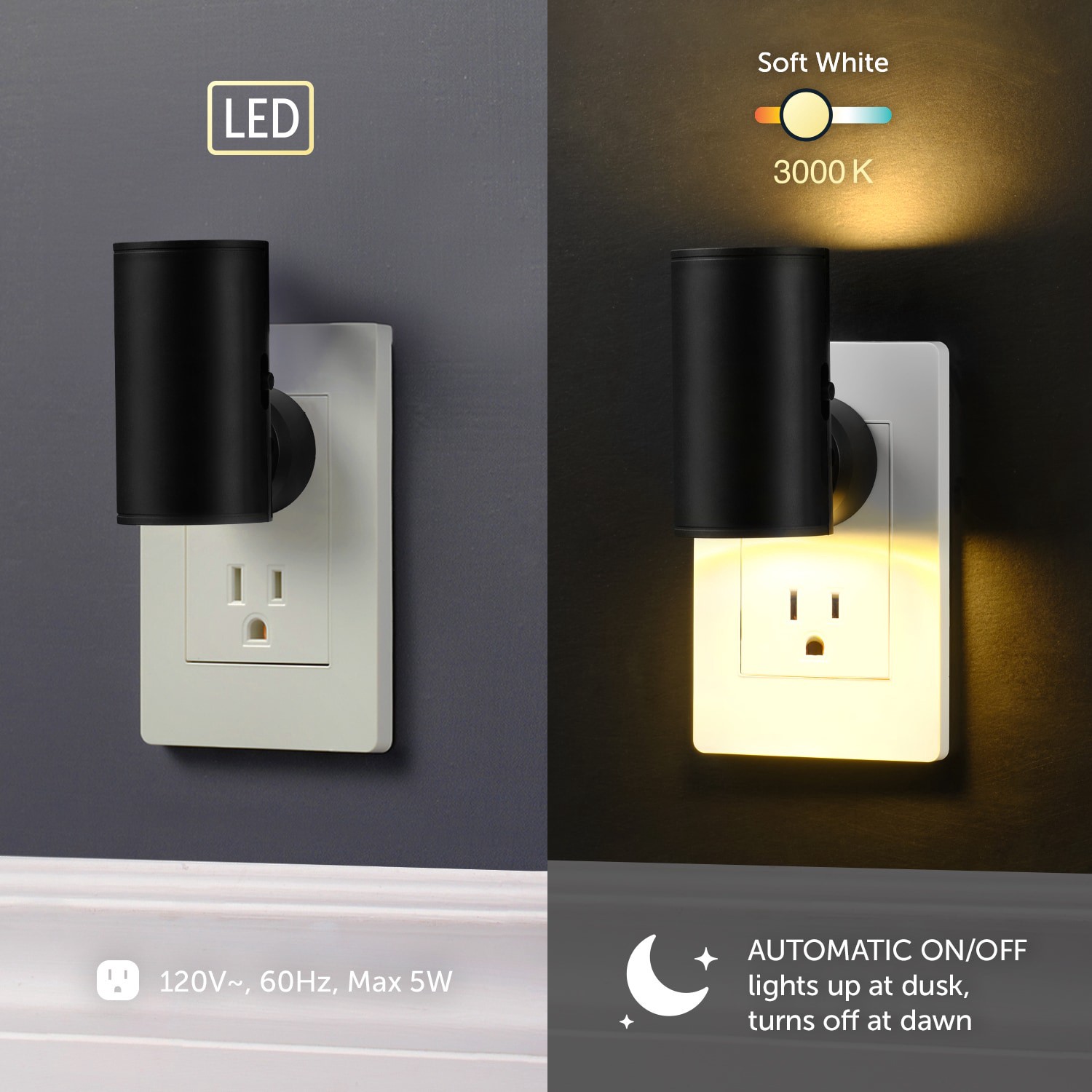 FULL RANGE DIMMABLE: easily adjust brightness from 0–100 lumens with its side switch to create the perfect lighting level for any room or time of day. AUTOMATIC DUSK TO DAWN SENSOR: built-in sensor tu…