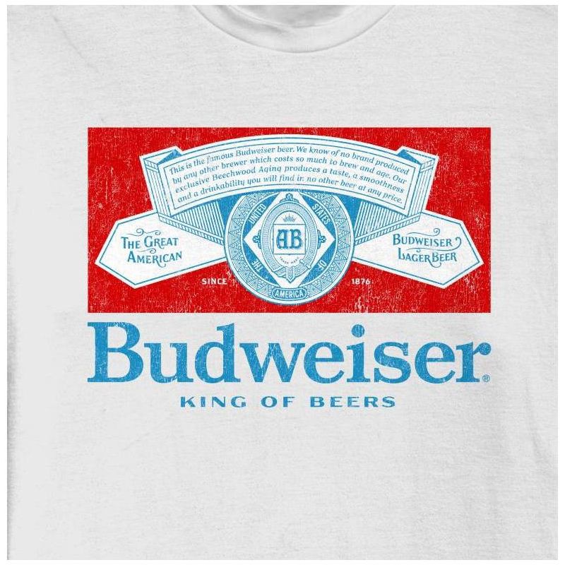 Upgrade your all-year wear with the Men's Budweiser Short Sleeve Graphic T-Shirt in White. Designed in a classic crewneck style, this graphic t-shirt layers well under cardigans, sweatshirts, button-d…