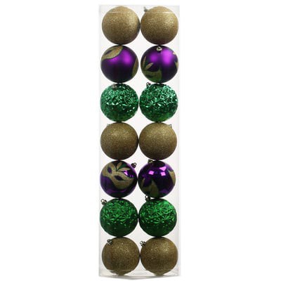 Purchase the 14 Pack 97mm Green, Purple & Gold Plastic Ball Ornaments by Celebrate It at Michaels. These Mardi Gras ornaments from Celebrate It are perfect for lending a festive touch to your party de…