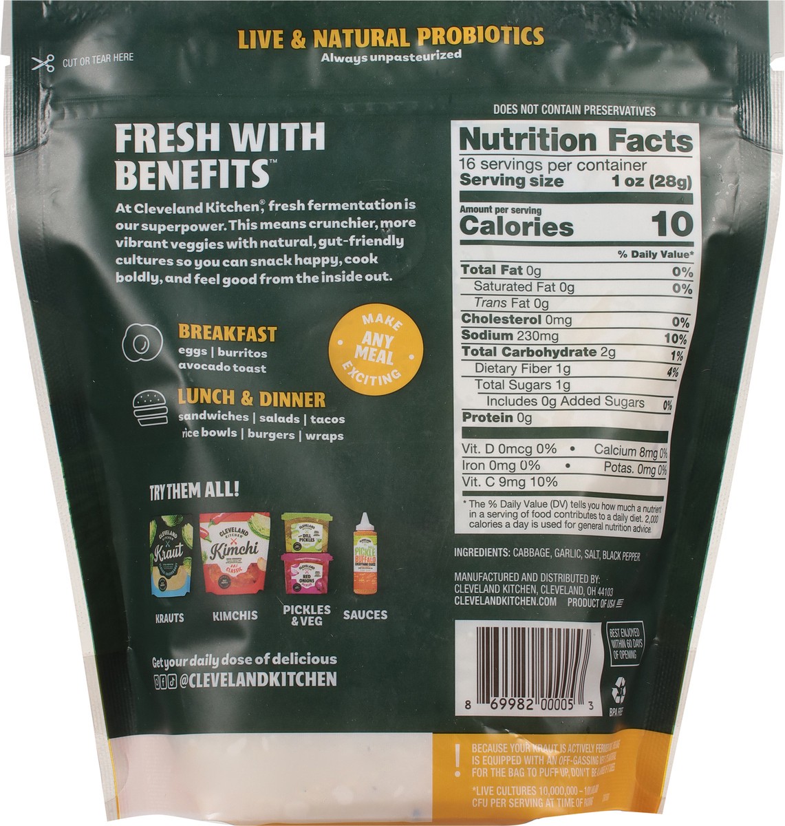 Cleveland Kraut Kitchen Roasted Garlic Sauerkraut, 16 Oz