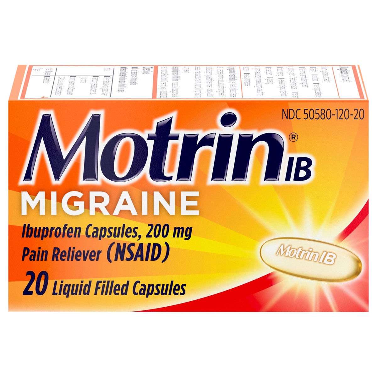 Motrin IB Migraine Relief Liquid Gel Ibuprofen Capsules provide fast and effective relief from migraine headaches. Each of these liquid-filled gel capsules contains 200 milligrams of the NSAID* pain r…