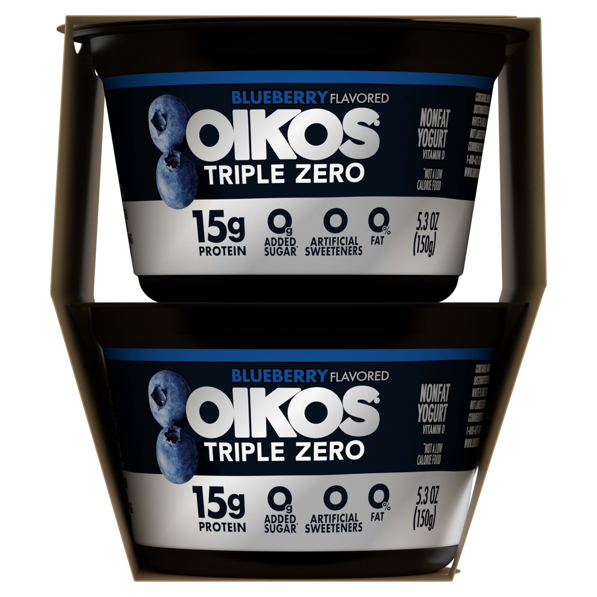 Enjoy epic tastes with Oikos Triple Zero Nonfat Blueberry Greek Yogurt Pack, four delicious nonfat Greek yogurt cups with more of what you want and less of what you don''t. Each Oikos Triple Zero yogu…