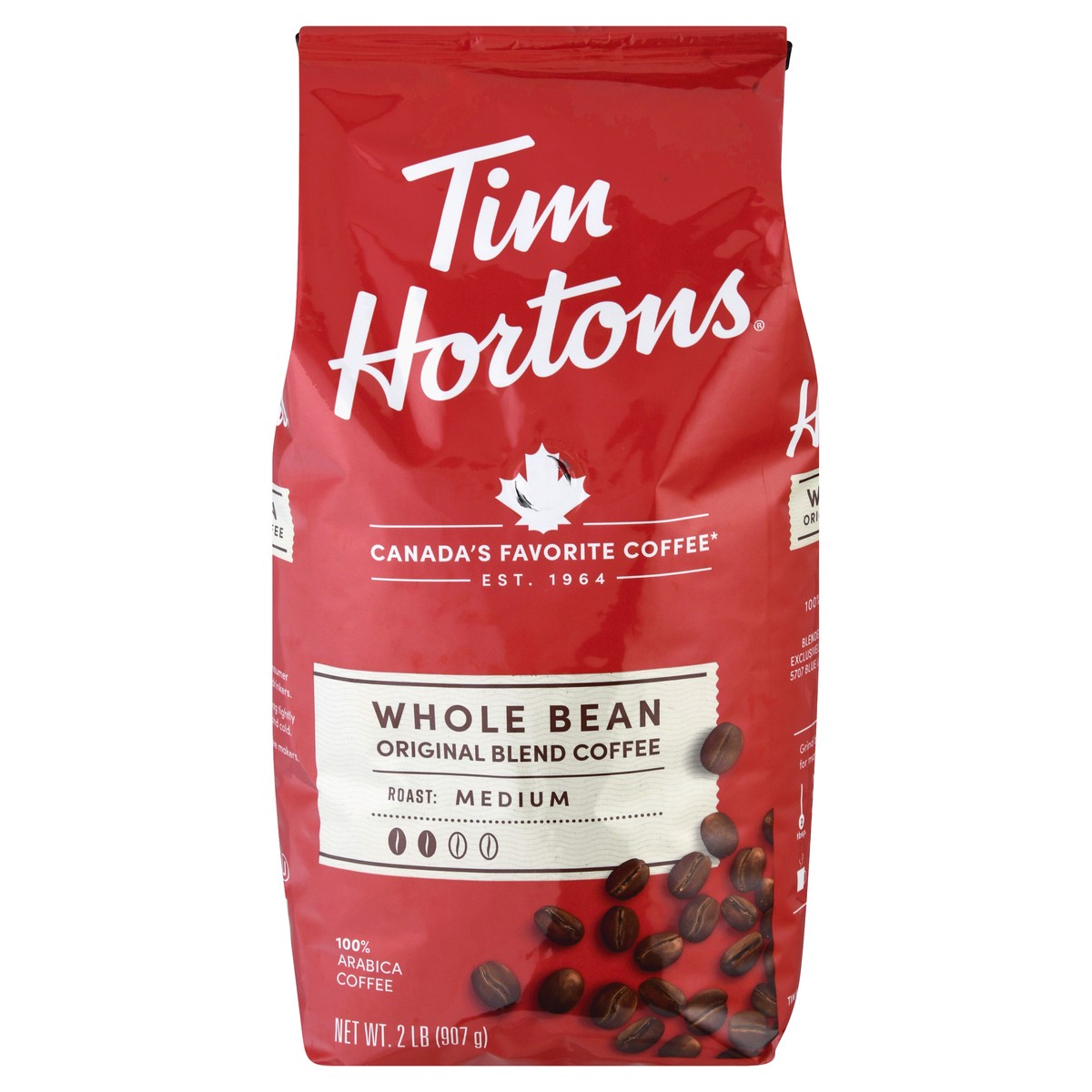 Tim Hortons Medium Roast Whole Bean Original Blend Coffee 2 lb