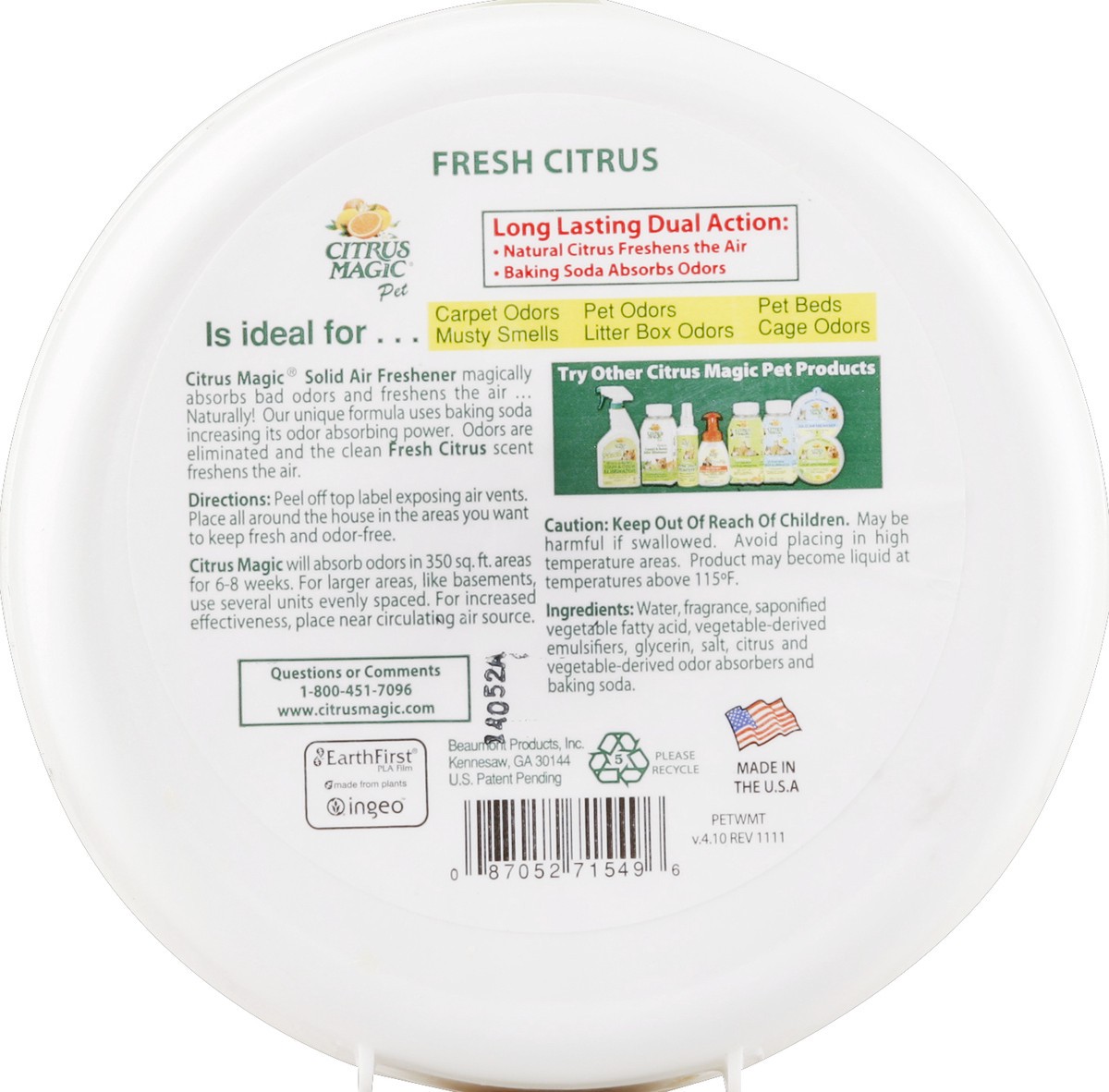 Ideal for continuous freshening of: litter boxes; pet cages; pet beds; closets & all pet areas. Long Lasting Dual Action: Natural citrus freshens the air; Baking soda absorbs odors. Is ideal for: carp…