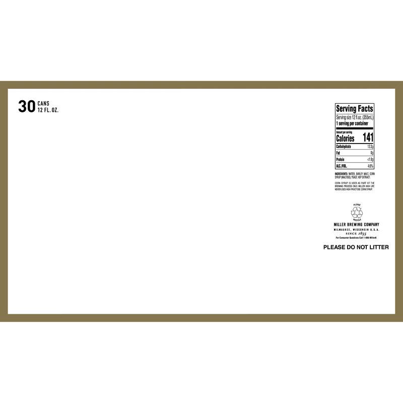 - You'll get thirty 12-ounce beer cans of Miller High Life Lager Beer