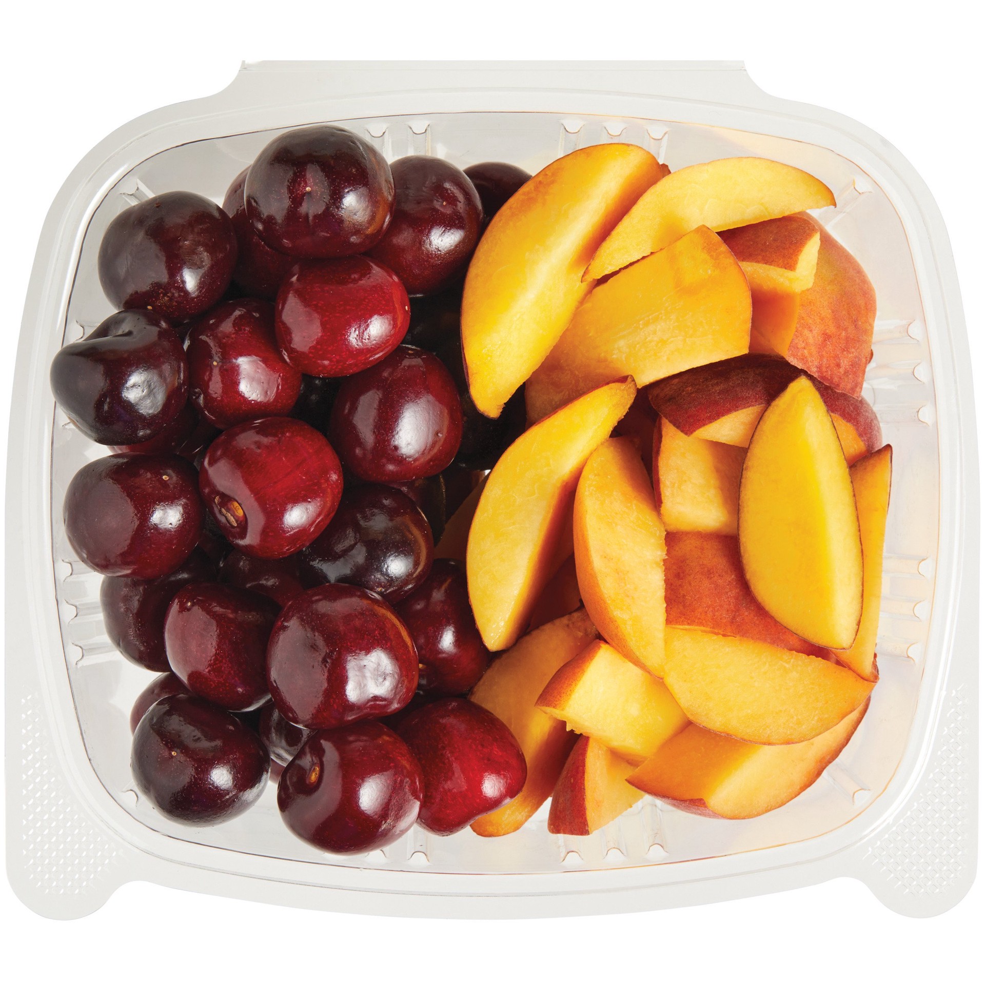 Washed and packaged in a large lidded bowl for your convenience, these cherries and sliced peaches make enjoying fresh fruit of the season easier than ever.