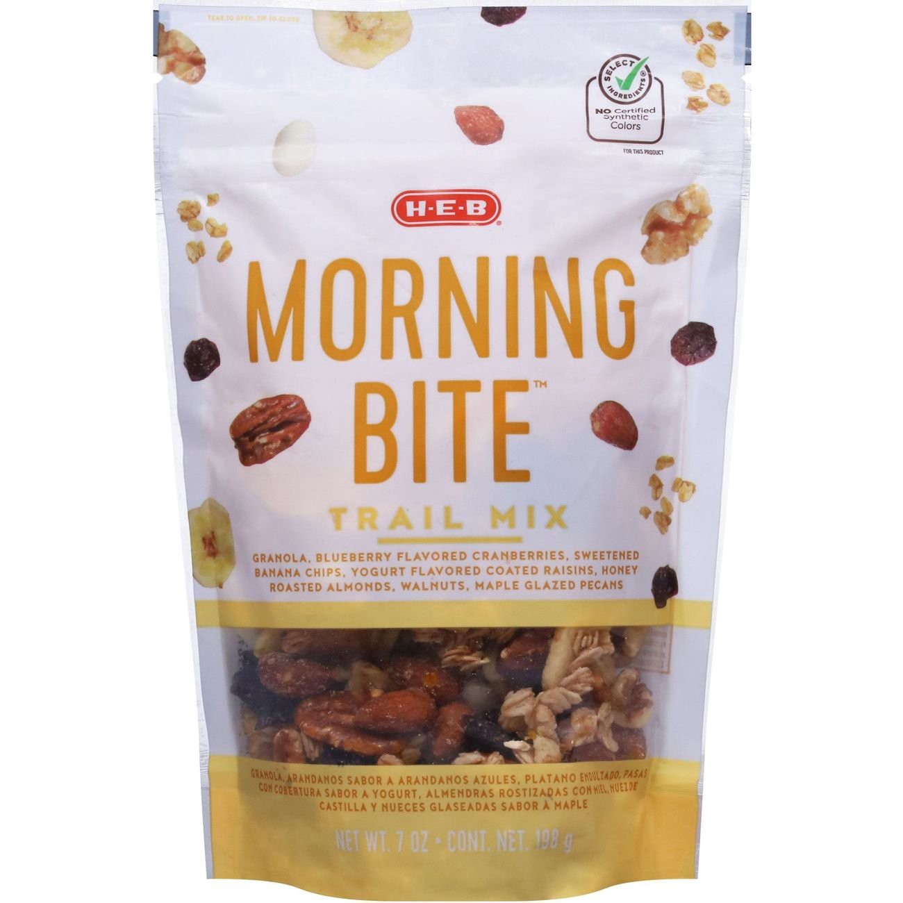 Even if you have breakfast, you may still be craving a little snack before lunch. Reach for H-E-B Morning Bite trail mix, packed with clusters of blueberry-flavored cranberries, granola, sweetened ban…