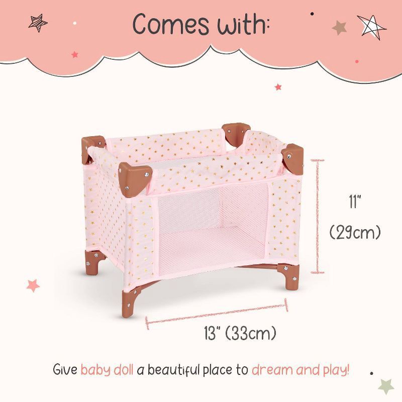 - Soothing Details: Designed in a lovely pink color palette with cute golden stars, cuddly baby dolls will have a beautiful place to dream and play.