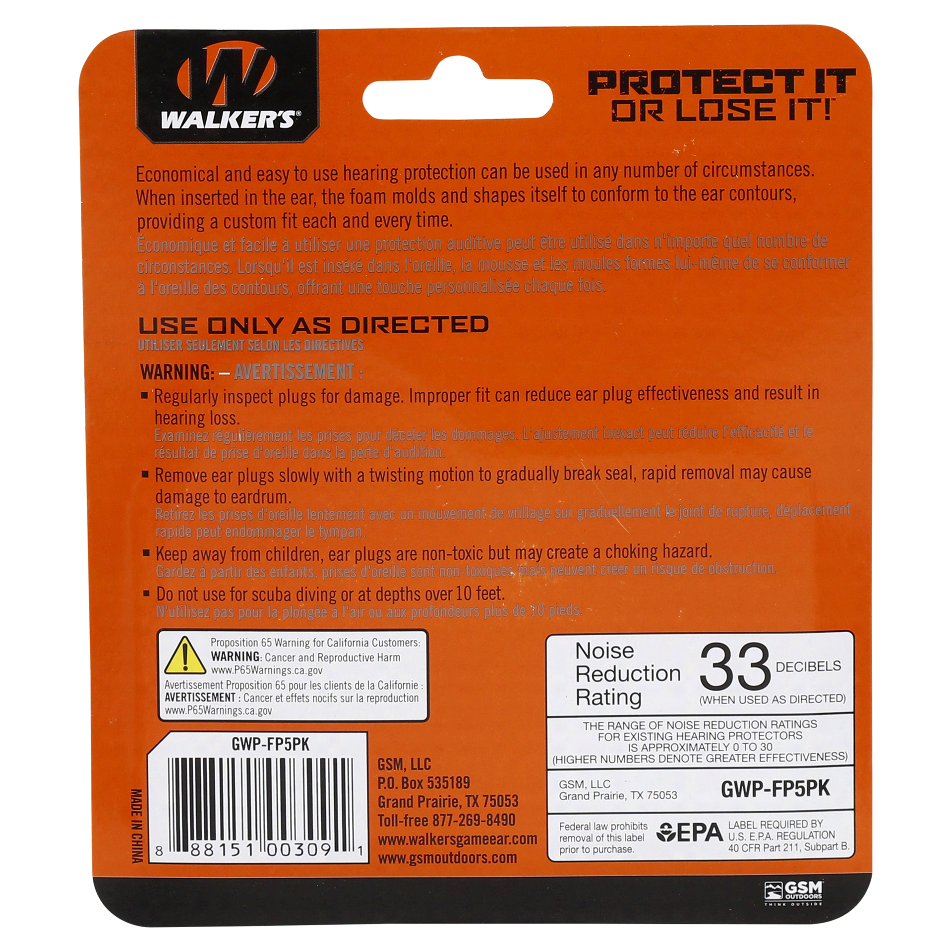 Protect it or lose it Economical and easy to use hearing protection can be used in any number of circumstances. When inserted in the ear, the foam molds and shapes itself to conform to the ear contour…