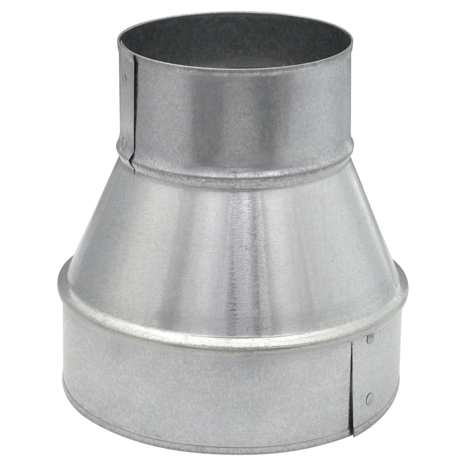 Reduces or increases the diameter of galvanized round pipe. Connects 6-in pipe to 4-in pipe in a run of round duct. Constructed from 28-gauge galvanized steel for durability and rust resistance. Featu…